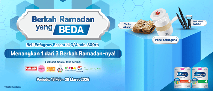 Menangkan 1 dari 3 Berkah Ramadan yang tersedia di toko dengan pembelian Enfagrow Essential minimal Rp800 ribu! Mom bisa dapetin apa aja, sih? Ada Panci Serbaguna, Toples Lebaran, atau Knife Set, pastinya cocok untuk Moms menyambut persiapan Ramadan dan Idul Fitri bersama Little Leader dan keluarga!