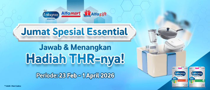 - Program promosi ini berlaku untuk pembelian produk Enfagrow Essential tahap 3 atau Enfagrow Essential tahap 4 minimal Rp 175.000 dengan varian apapun yang dijual di toko-toko Alfamart/Alfagift di seluruh wilayah Indonesia.