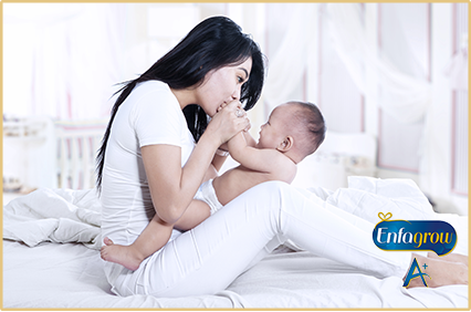 Selama enam bulan pertamanya, si kecil seakan bertransformasi dari bayi kecil yang mudah lapar dan mengantuk, menjadi bayi sibuk yang bisa duduk tegak, meraba-raba benda di sekelilingnya, serta mencoba berinteraksi dengan dunia sekitarnya. ASI merupakan sumber terbaik untuk memenuhi nutrisi penting yang ia butuhkan pada periode lonjakan pertumbuhannya. Namun bagi Ibu yang tidak dapat memberikan ASI, sebaiknya berikan susu formula yang telah diperkaya dengan nutrisi yang terdapat pada ASI, untuk mendukung pertumbuhannya.