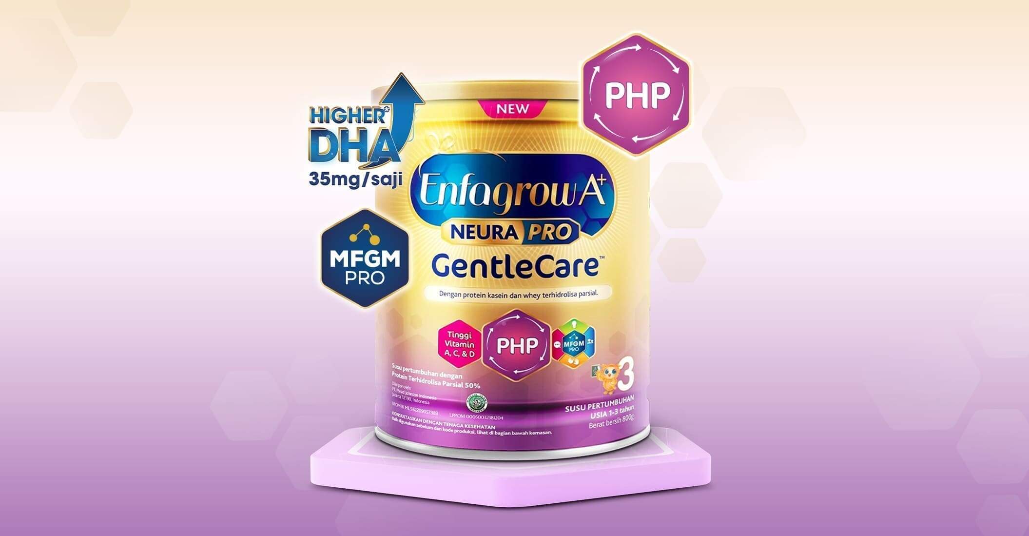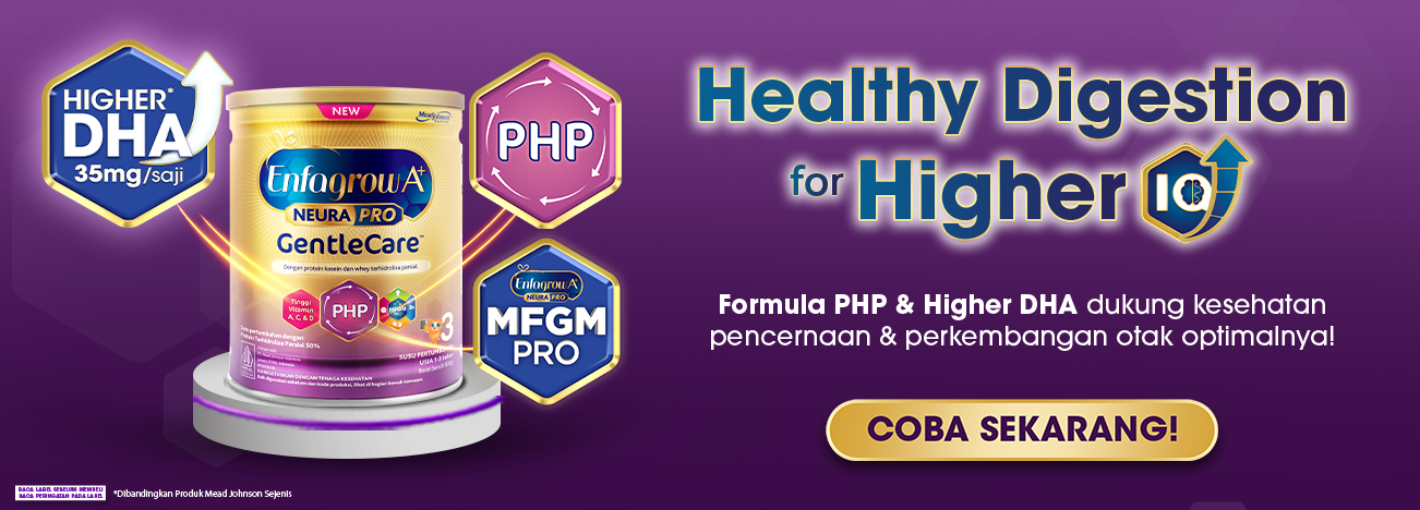 Apabila si Kecil sering rewel, perut kembung, dan buang angin kemungkinan ia mengalami ketidaknyamanan pencernaan. Segera berikan ia Enfagrow A+ Gentle Care MFGM Pro yang dilengkapi dengan PHP (Partially Hydrolyzed Protein) formula yang memiliki protein yang sudah dipecah 50% lebih kecil, sehingga lebih mudah dicerna oleh perut si Kecil yang peka. Tak hanya itu, Enfagrow A+ Gentle Care MFGM Pro juga memiliki kandungan DHA lebih tinggi* (35 mg/saji), Omega 3 dan 6, Asam Folat, Zat Besi, dan Kalsium untuk bantu dukung proses belajarnya!